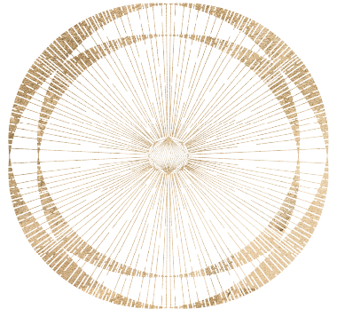 Un motif spiral en lignes dorées sur fond noir, donnant une impression de profondeur et de mouvement.